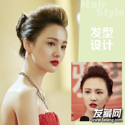 郑爽在《相爱穿梭千年》中的盘发造型,前额的蓬松发包设计让盘发更加的优雅气质,同时能在视觉上让脸型变得更加纤细。