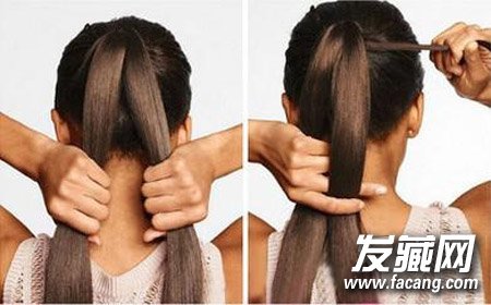 STEP1:将头发梳成一个高马尾,从中间一分为二。