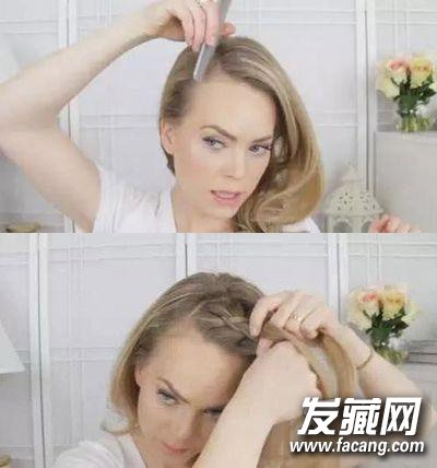 第二步:从发量多的一侧取少量分为均等的三份,开始编发,在编发的过程中不断的加入发丝。