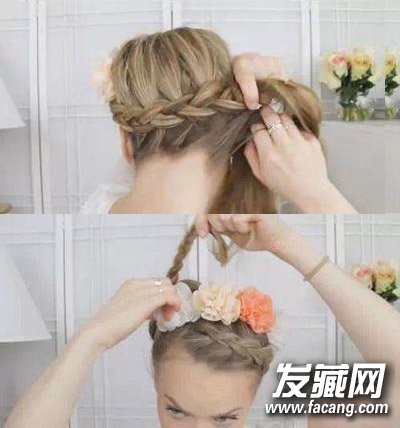 第六步:将所以的发丝加入完全后,剩余的发丝编织成三股麻花辫。