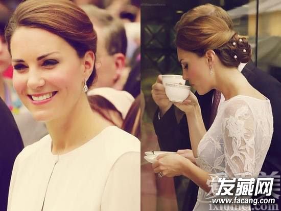 作为时尚风向标的凯特王妃,在不少戴帽造型中也选择了盘发,更显端庄大气。