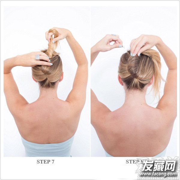 接着就把后面的头发不停向上扭转拧紧成一个盘发造型。