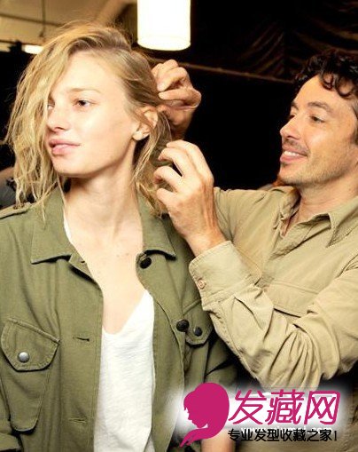 用波浪发夹将头发夹出自然的卷度,当然你也可以用卷棒处理。