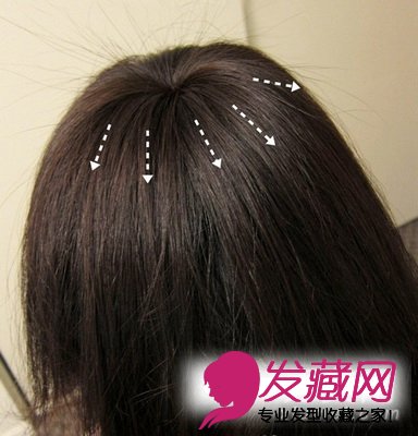 第四步再来,头低低让头发平均散布,铺满整个甜甜圈。发量较少的人也让头发平均散开。