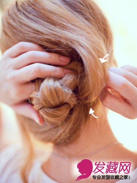 按照箭头的方向固定住头发。