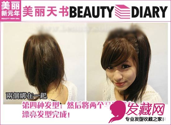第四种发型在双马尾的基础上,将两个马尾合并在一起,用皮筋绑紧!立刻变成了另外的一种发型。
