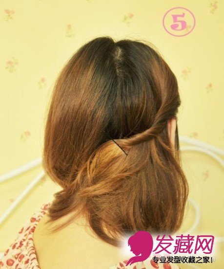 第五步左边也同上哦,逆时针拧 ,拧成一股辩后,卡在脑后。