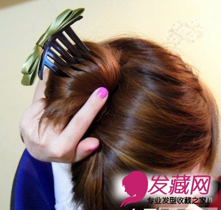 第六步插上蝴蝶发梳。