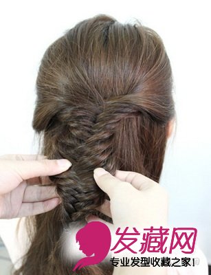 5、把编好的鱼骨编拉一下,这样看上去就更加有层次。