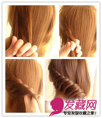 9.一直扭到头顶处垂下的发尾,也将其加进去
