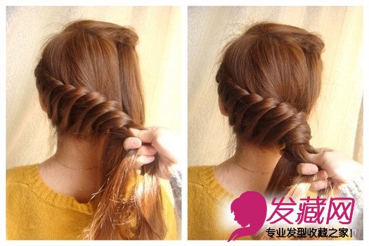 11.接着剩下的头发继续扭,此时发股会越来越大