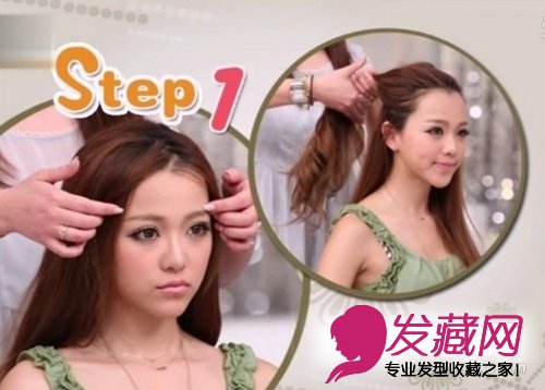 以眼睛位置为界限,把前端的长发轻轻梳起。绑成一个较松散的小辫。