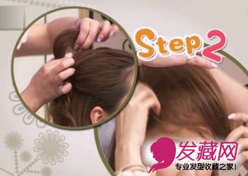 把小辫子从后脑勺被捆绑住的头发位置穿过,经橡皮筋处出。把头发往脸部前方放。然后调整位置。