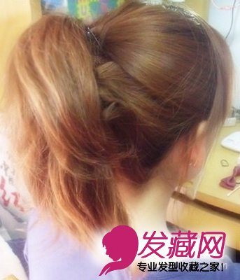 然后将第二个马尾塞一部分头发到第一个马尾的皮筋里。第三个马尾赛一部分头发到第二个马尾的皮筋里。