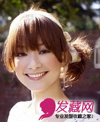 白色的绸缎式发带为发型点缀出甜美的感觉,而简单的蓬松侧扎发营。