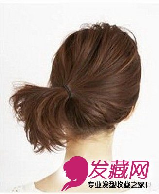 将头发全部扎向一侧,用橡皮筋固定,头顶部分适量抓蓬松来。