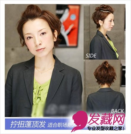 夏天里,如果还留着厚厚的刘海,不仅自己热得难受,别人看着也觉沉闷,学日系流行的款式,将刘海束起来绝对是夏日的最佳选择。这款发型干练、简洁,刘海束在发顶会让人看上去更高一些,侧面、后面也不会显得呆板,干练中带有中性的洒脱与随性,很适合年轻的职场OL!