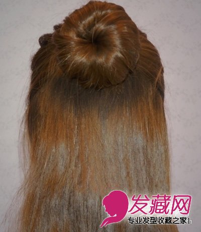 发型diy:先将上半部分头发梳成一个花苞,如上图。