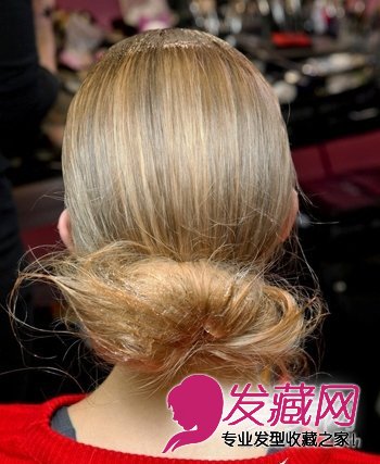 在梳低发髻的时候,想做出光洁整齐的发卷,可以先在湿发上喷上造型产品,然后吹直。而且会充满柔亮光泽。将发髻部分用梳子倒梳出毛躁的效果来增添时尚元素,这样能让头部看上去更浑圆饱满。