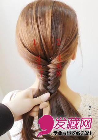 步骤四:按照这样的编发步骤,将头发一直编到发尾处。