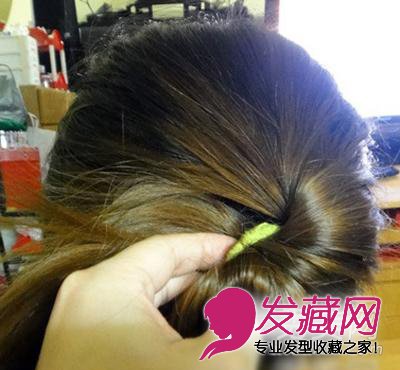 步骤3:在将马尾往里面塞,记得边塞的时候,稍微的紧下皮筋,面的散开。