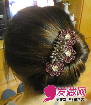 步骤7:在露出来的空洞位置,夹上一个漂亮的发饰,这样简单的韩式盘发就完成了哦。