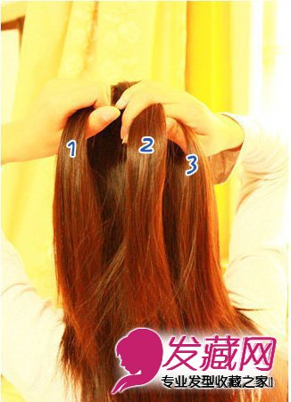 抓起头顶一小撮头发,将它分成3份 如图1、2、3份