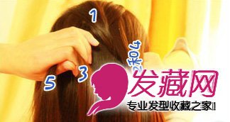 再勾起左边邻近一撮头发为5 然后将3、5合并 压到2和4上面