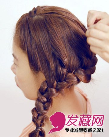 第八步:把前区的小辫子绕在大辫子上方用夹子固定。