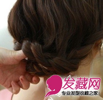 将辫子沿着脖子弧度往回绕,悄悄地塞到头发里边,不要显露出来。