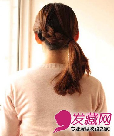 然后把这个麻花辫和剩余的头发一起,全部扎一个中等高度的马尾