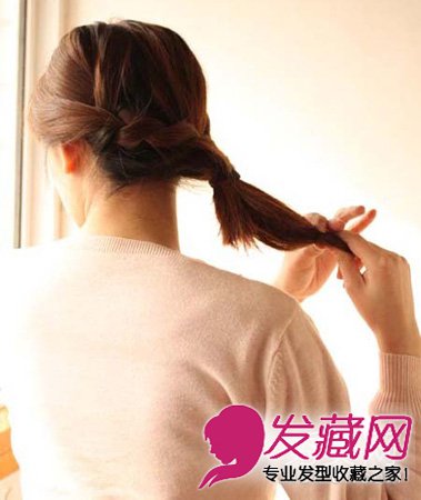在马尾辫的三分之一处,如图的位置扎一个皮筋