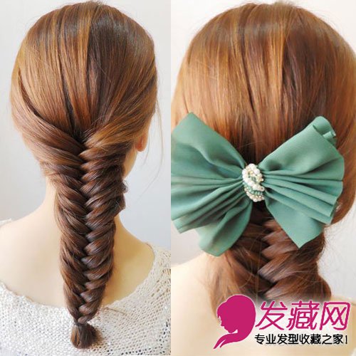 效果图,是2款鱼骨辫的编发和鱼骨辫的盘发发型。非常的简单易学哦!