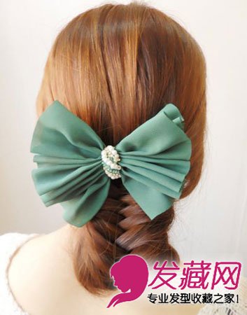 最后,再带上喜爱的发饰,鱼骨辫的盘发也完成了。是不是很简单呢?