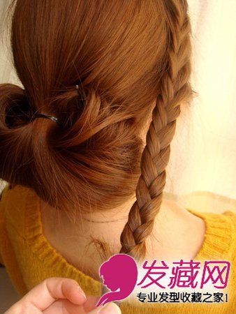 编到没有头发加为止,在用麻花辫的编法编完下面的头发,用皮筋固定,然后另一边也这样编
