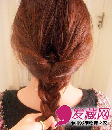 把下面一部分剩下的头发,编成麻花辫的样子,并用皮筋绑好