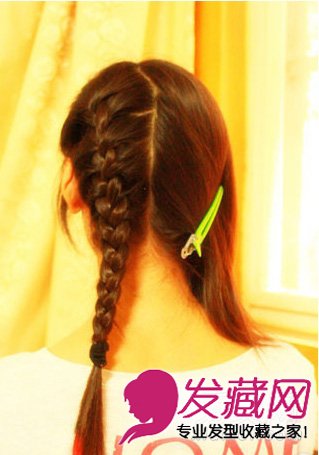 先按照韩式麻花辫的编法,来编(就是在每编下一股的时候,分别从两旁各加进一束头发,以此类推)再编到没有头发加为止,再按照麻花辫的编法编。最后,用皮筋绑好。