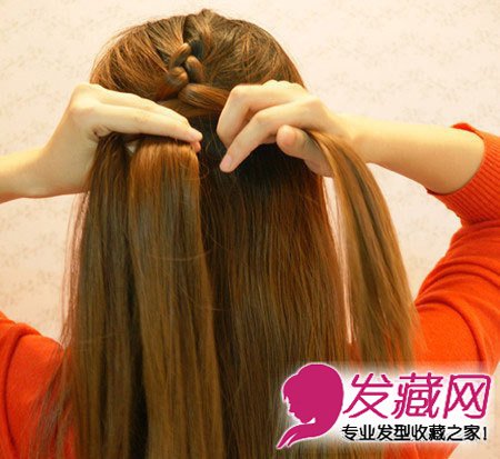 反蜈蚣辫和正蜈蚣相反,只需将头发一股放在一股下面就好了。