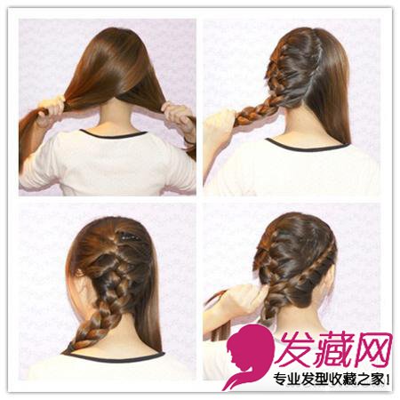 Step2:将左边的发型编织成一个大大的蜈蚣辫,如果不会编的话,可以参考麻花辫,编织麻花辫的过程中,不断的从两侧发丝中抽取一束编织进来,就可以了。