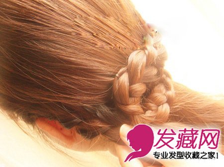 再把余下的辫子,往右弯。然后绕着,剩下中间一部分的头发,缠绕