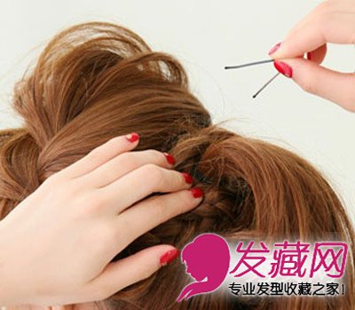 第五步:同样将发尾缠绕马尾用U型发夹固定。