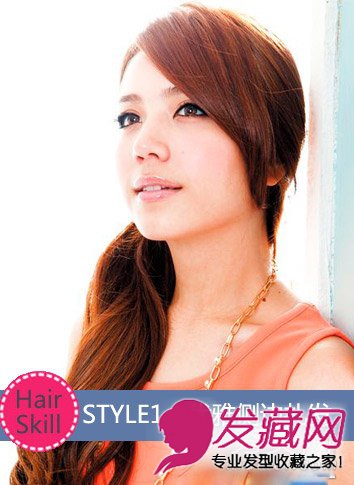 丰盈的侧边长卷发扎发与长长的斜刘海完美搭配,优雅大变身。