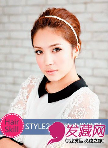极具人气的盘发造型,只需要扭转发束就能完成,再用细细的发饰固定刘海,展露出白皙的额头,增加丰富的视觉感。