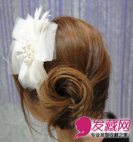 搭上一个漂亮的秀发发饰,大花饰更衬托典雅的感觉