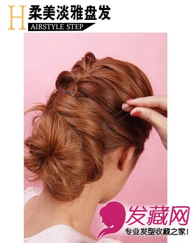 step 9:用黑色发夹将发尾固定就完成这款优雅的盘发发型了。