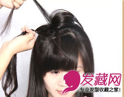STEP1:先从头顶右边的的长发选出一大束秀发,注意不要选择到左边待用的头发哦。然后开始绑成三股辫子。