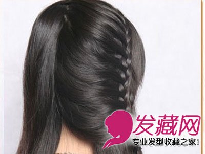 STEP3:这时候背面效果如图,背后头发是中分的状况。而且可以看出右边背部的长发都有参与到编发过程。