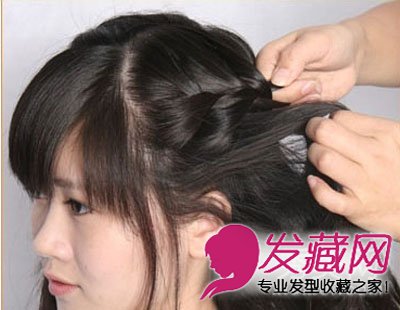 STEP6:在编发过程中要不断加入辫子附近的秀发,加强辫子设计感和粗度。这似乎是韩国发型最常见的一种编发技巧呢。