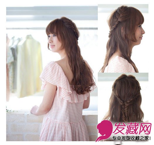 发型点评:棕色长卷发浪漫唯美,蜈蚣辫发辫打造出精致甜美的感觉,蜈蚣辫+长卷发让你瞬间成为甜美仙子。