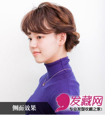 侧面效果图。编发效果隐约遮住耳朵,散发出些微的性感。喜欢这款盘发的你就一起跟着动手吧。